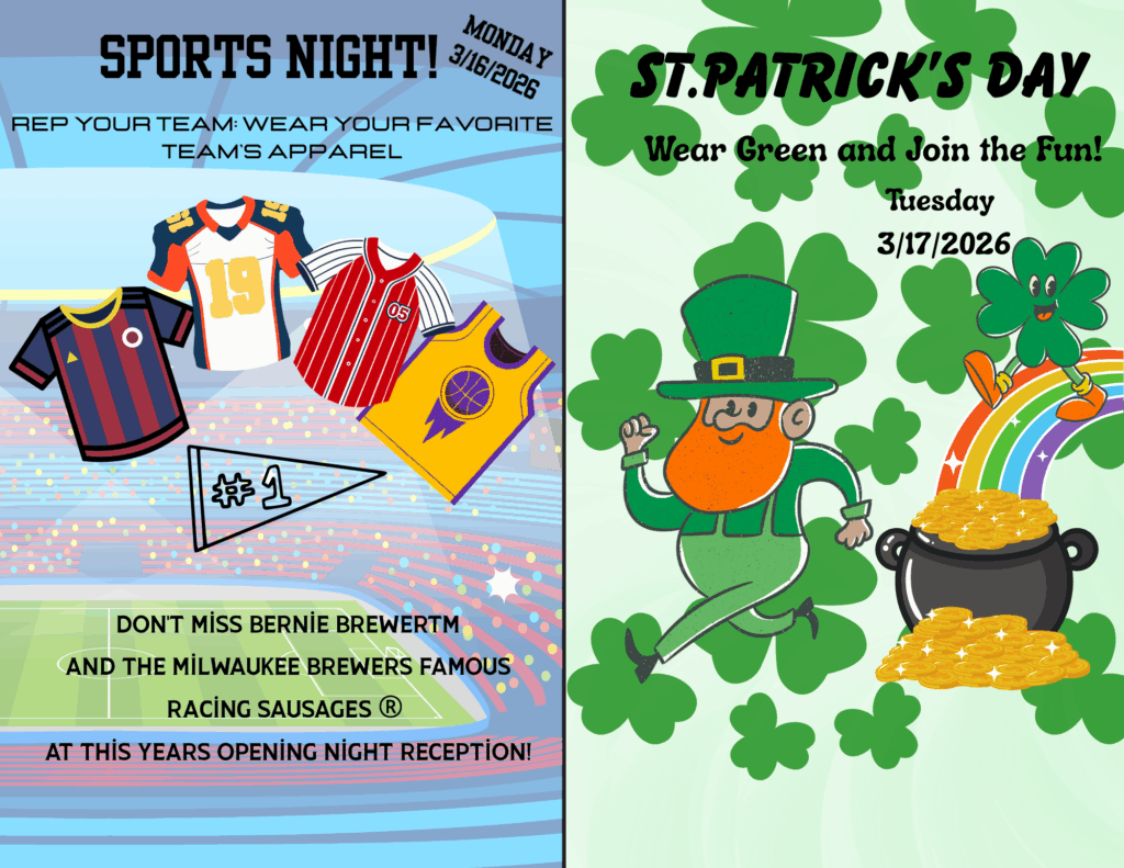 There will be two theme nights this year! Last year, we paid tribute to the classic tale of Alice In Wonderland. For this year, we will be hosting a “Sports Night” theme event on Monday, March 16th. We will be hosting a “St. Patrick’s Day” theme event on Tuesday, March 17th. Show your support by wearing your favorite team’s jersey and help us celebrate St. Patrick’s Day!